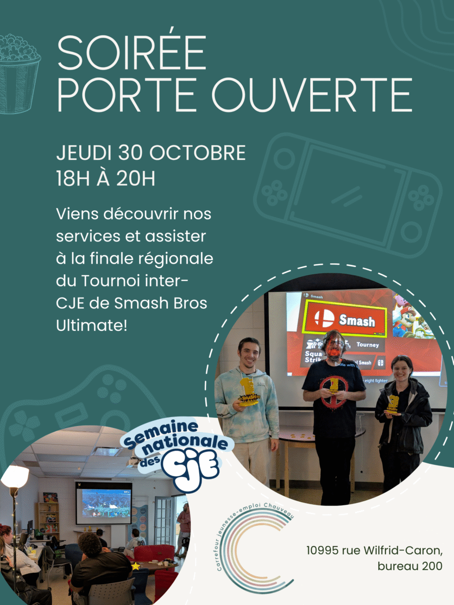 Nous sommes fier·ères de vous annoncer le lancement de la première Semaine nationale des Carrefours jeunesse-emploi (SNCJE), qui se déroulera du 27 au 30 octobre 2025 partout au Québec.